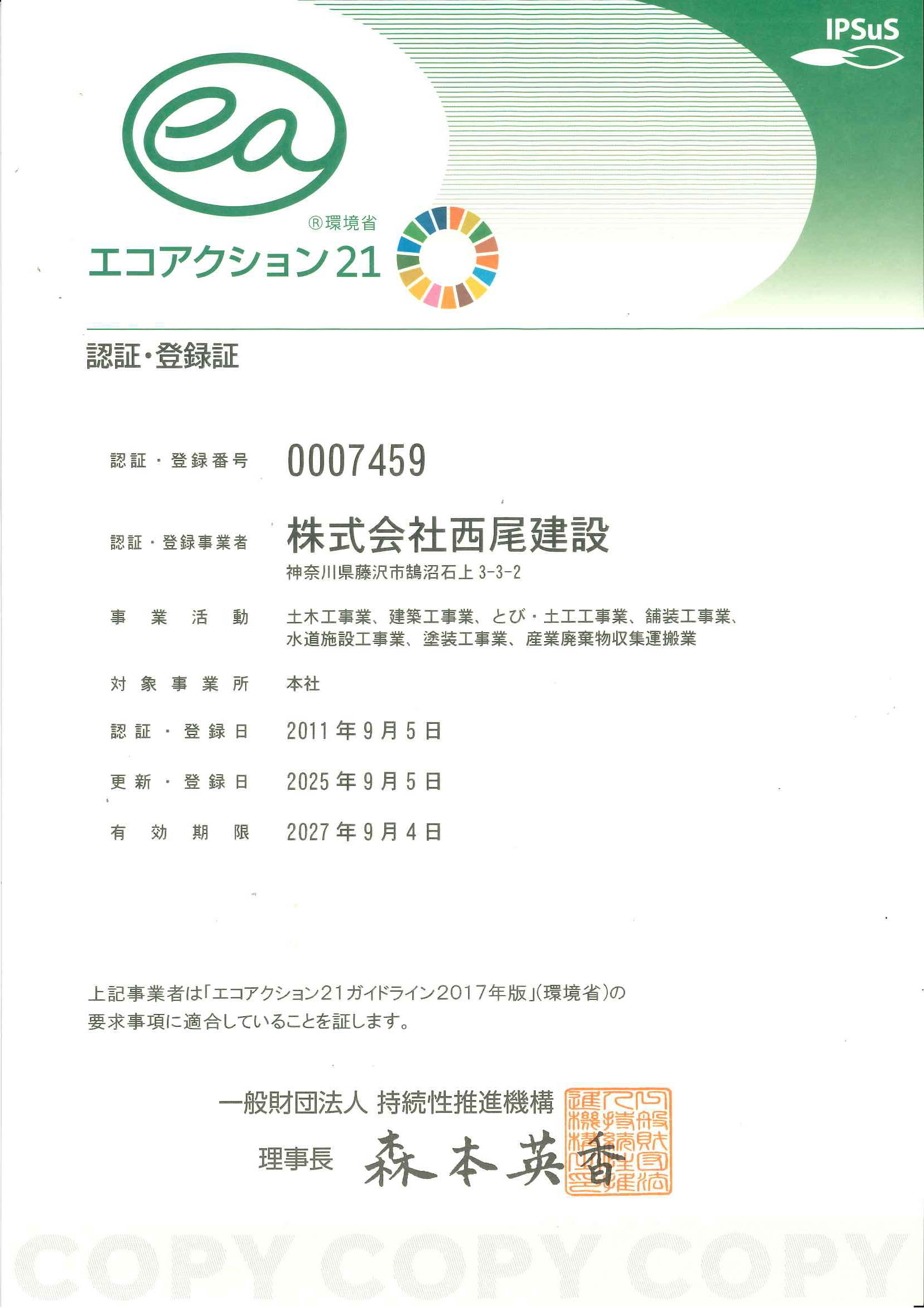 | 所属建設業者団体 | ・神奈川県建設業協会 昭和43年5月24日入会 ・藤沢市建設業協会 昭和43年5月24日入会 ・全国中小建設業協会 昭和53年4月1日入会 |